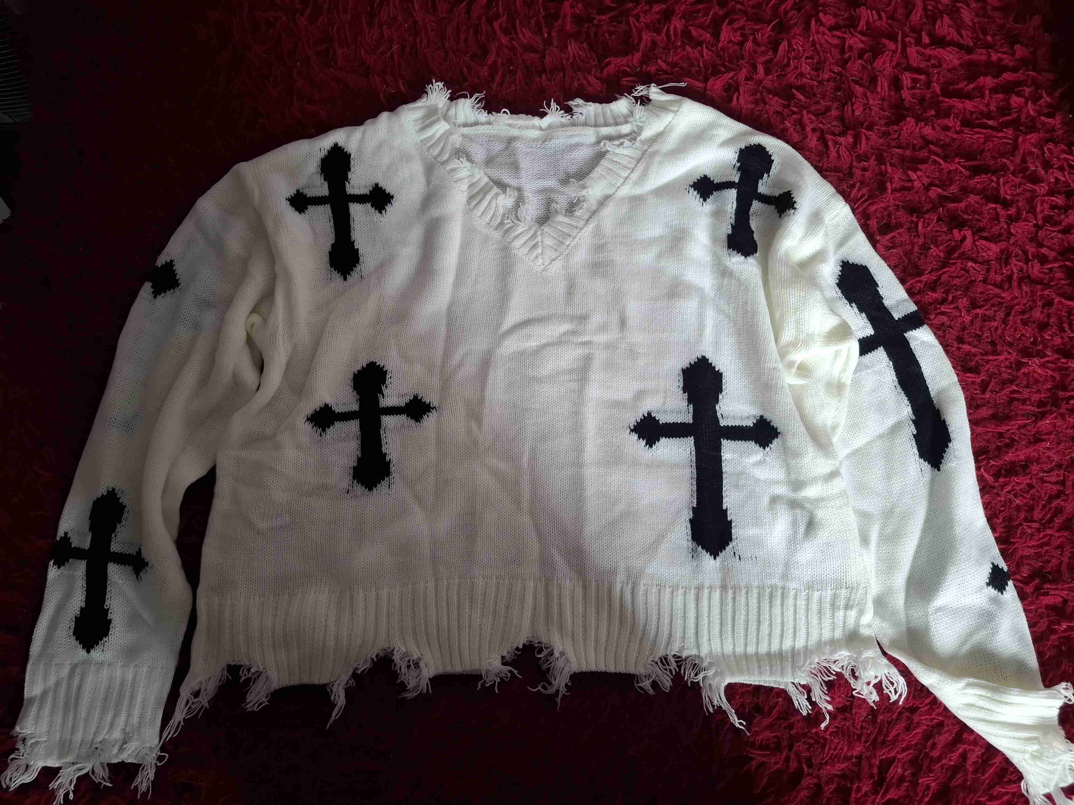 Suéter de estilo único con cruces negras. Ideal para días fríos. Talla S/M nuevo.
