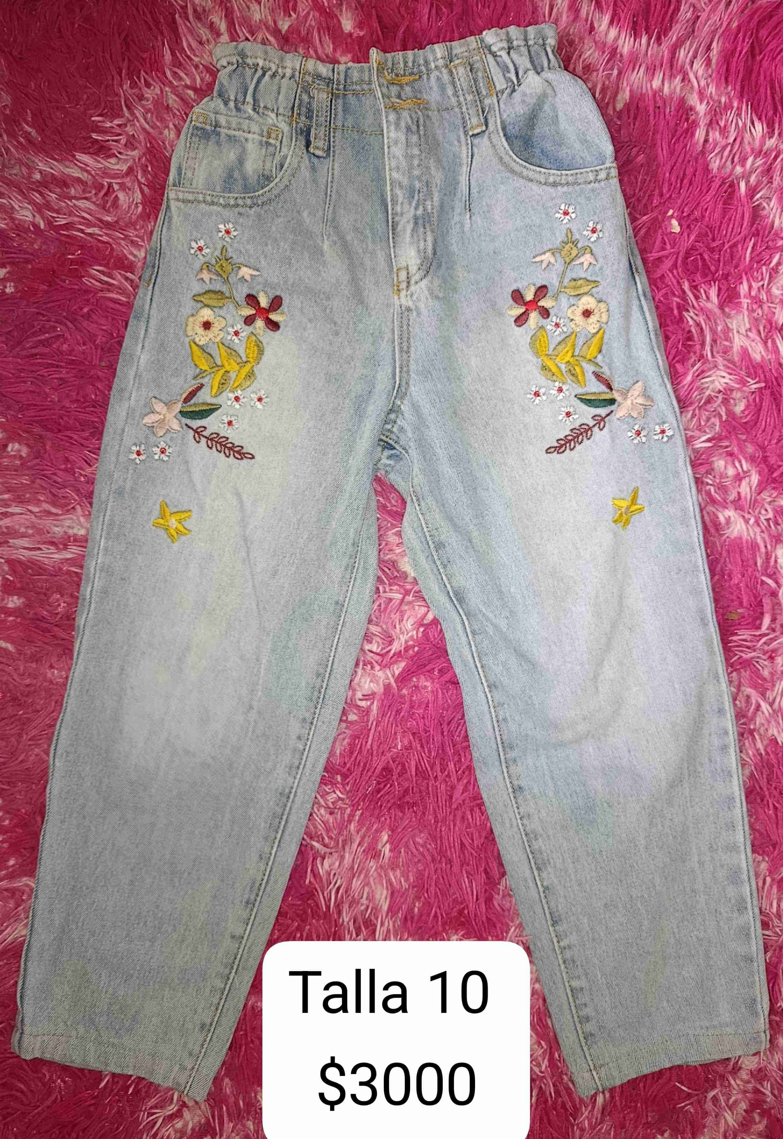 Pantalones vaqueros de niña con bordados florales. Estilo casual y cómodo para uso diario.