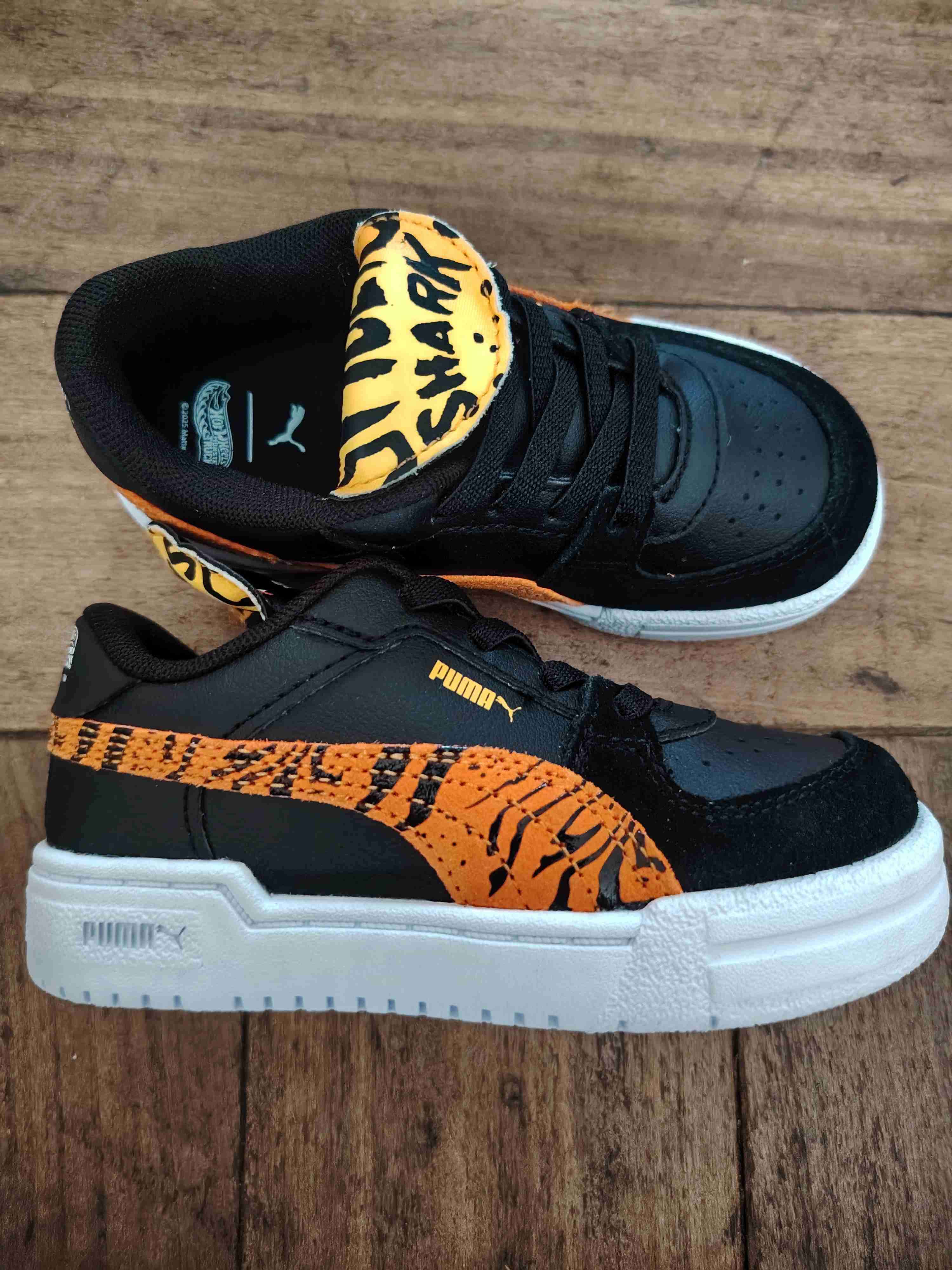 Zapatillas Puma negras con detalles naranjas, perfectas para el uso diario. En buen estado general. Talla 21 cm13. 5 25 cm15. 5