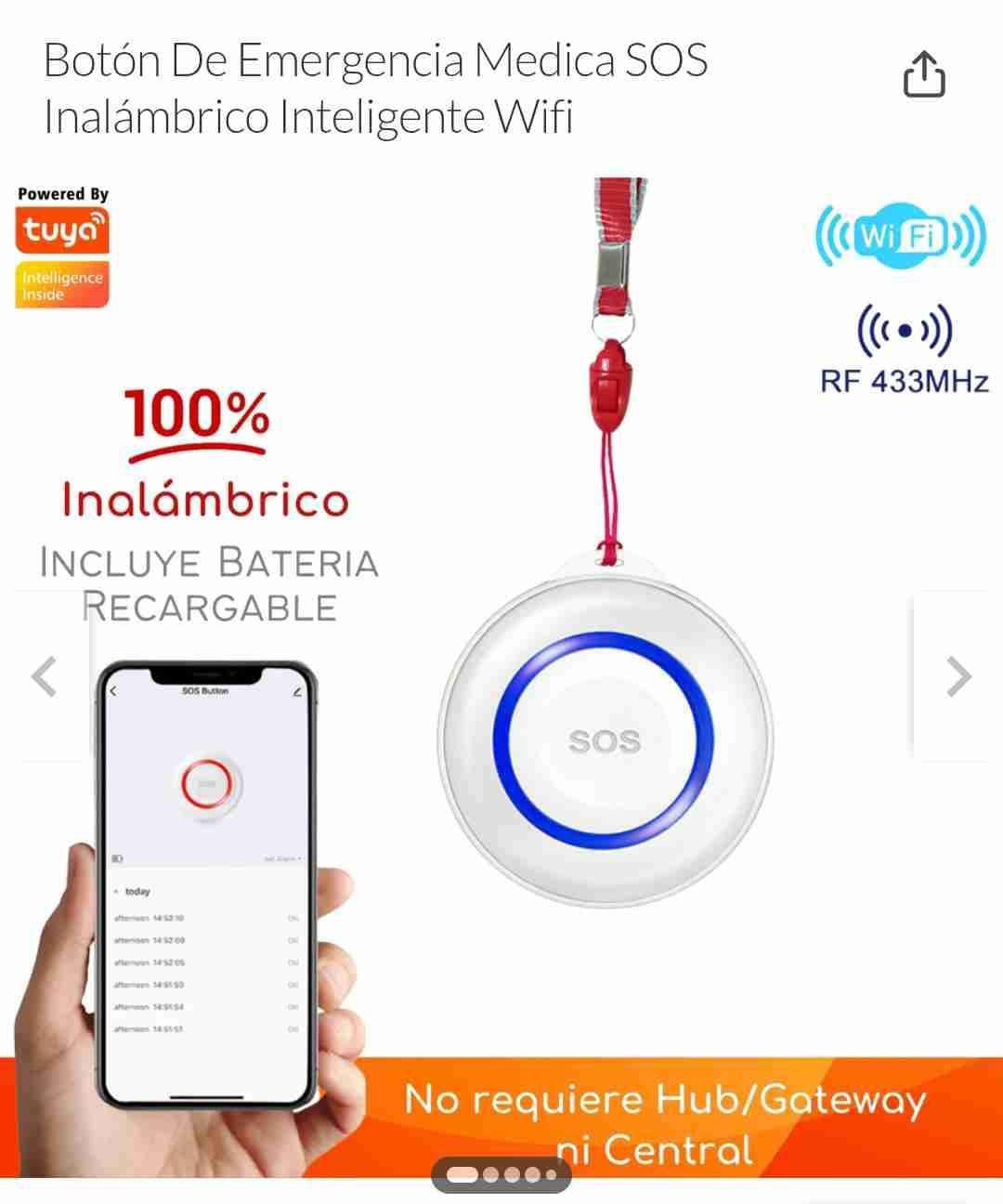 Botón inteligente para emergencias médicas. Diseño compacto y fácil de usar, ideal para el hogar o cuidado de personas mayores.