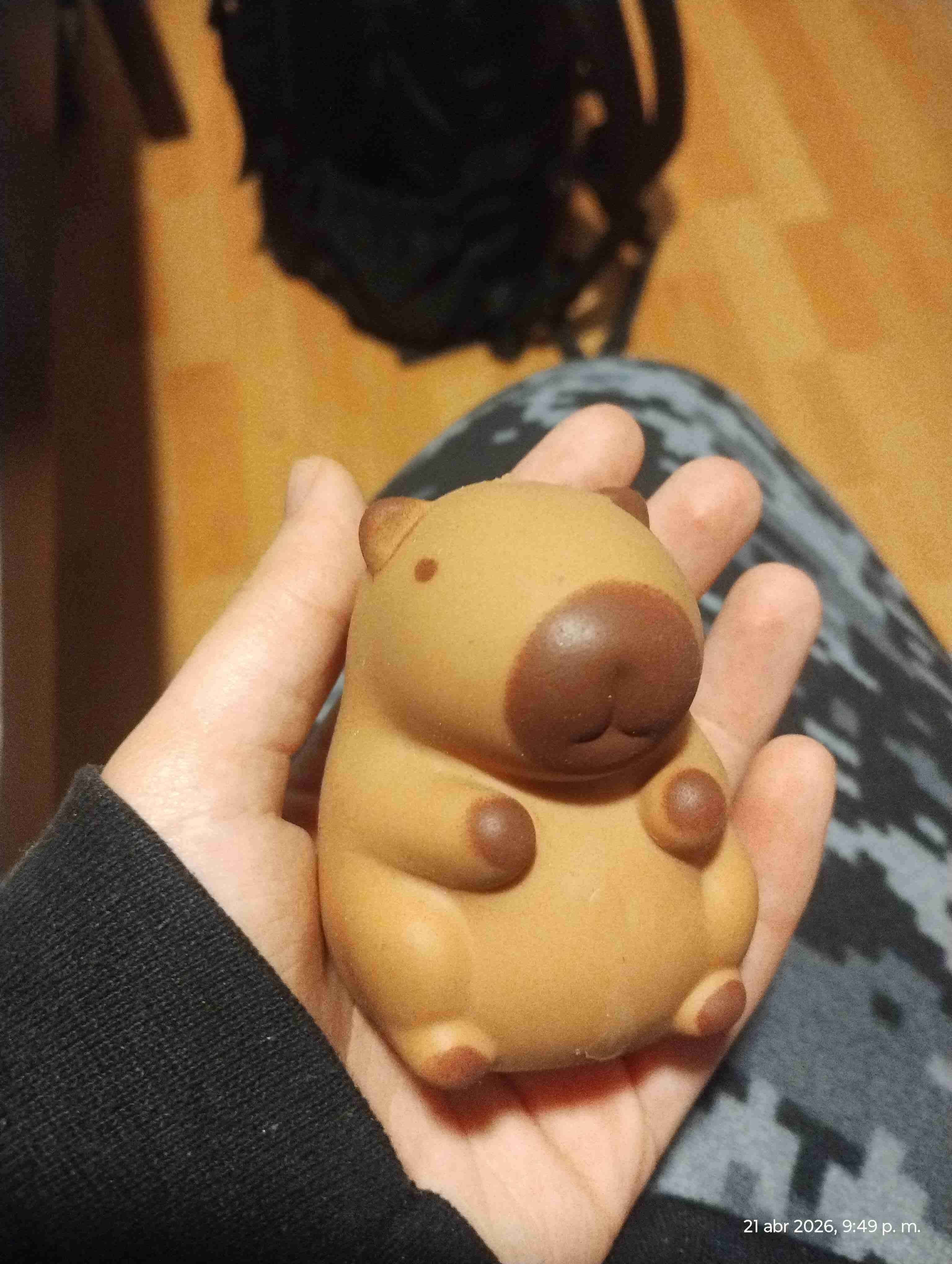 Figura de capibara pequeña, ideal para aliviar el estrés. Suave y cómoda al tacto.